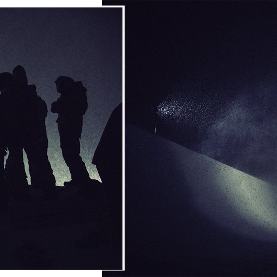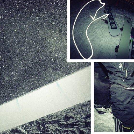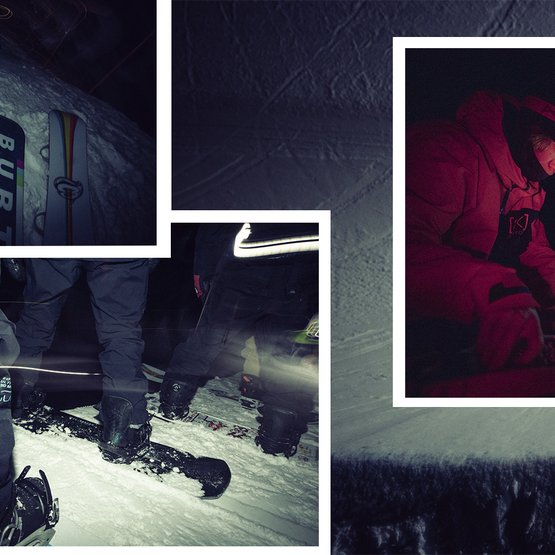 Two days prior to the shoot, riders were standing at the top of the very same pipe, surrounded by TV cameras, judges and fans. Lighting up the pipe for this session allowed riders to steer away from runs that yield the most points in the eyes of judges and focus on expressing their snowboarding through their personal style and favorite tricks.